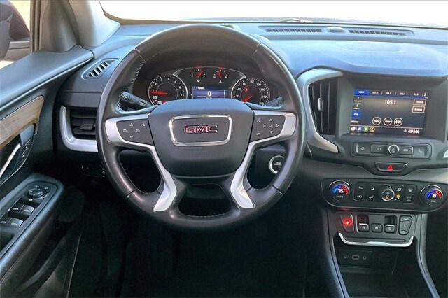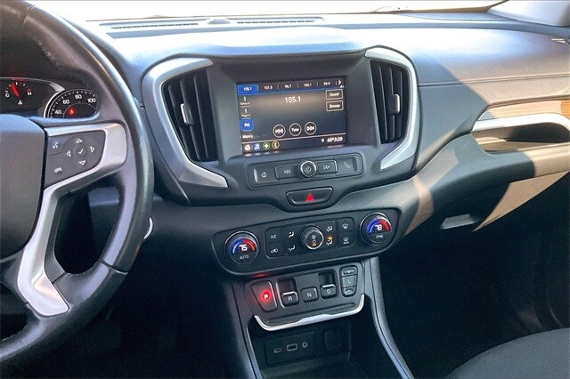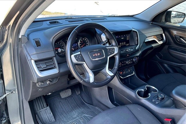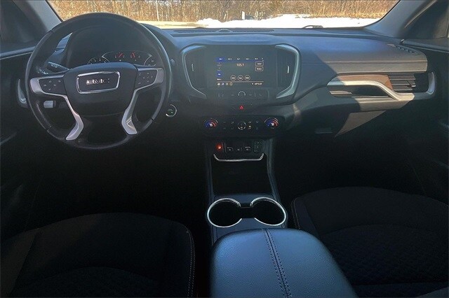 This 2021 GMC Terrain SLE FWD with the Driver Convenience Package delivers a sharp blend of modern style, everyday versatility, and smart technology that makes every drive feel confident and refined. Its bold grille and sculpted body give it a strong road presence, while a responsive, fuel-efficient powertrain keeps city commutes and highway cruises smooth and effortless. Inside, the cabin feels thoughtfully designed with supportive seating, intuitive controls, and convenience features that elevate daily driving, from keyless access and remote start to comfort-focused touches that make every trip more enjoyable. Advanced safety technology works quietly in the background to keep you aware and protected, while ample cargo space and flexible seating ensure its ready for work, weekends, and everything in between.