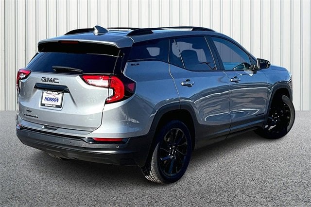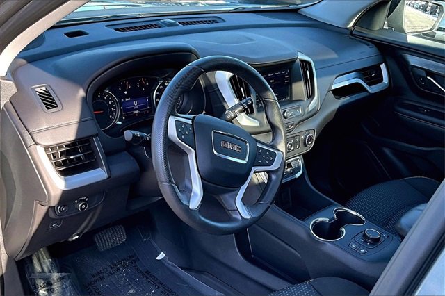 Get ready the 2023 GMC Terrain SLE is that compact SUV with a ton of personality. It takes what you want out of daily driving and weekend adventures, and delivers it with style, practicality, and a splash of excitement.Get ready the 2023 GMC Terrain SLE is that compact SUV with a ton of personality. It takes what you want out of daily driving and weekend adventures, and delivers it with style, practicality, and a splash of excitement. From the outside, the 2023 Terrain SLE wears its strength with subtle confidence. Its updated front end with signature grille and LED headlight-/taillight styling gives it that modern, athletic vibe.From the outside, the 2023 Terrain SLE wears its strength with subtle confidence. Its updated front end with signature grille and LED headlight-/taillight styling gives it that modern, athletic vibe. A 7-inch touchscreen infotainment system is standard, complete with wireless Apple CarPlay and Android Auto, so you stay connected and entertained wherever you goA 7-inch touchscreen infotainment system is standard, complete with wireless Apple CarPlay and Android Auto, so you stay connected and entertained wherever you g.Under the hood, the Terrain SLE uses a 1.5-liter turbocharged 4-cylinder engine, mated to a 9-speed automatic. It delivers around 175 horsepower and 203 lb-ft of torque enough for daily driving, errands, and highway cruising, while still giving good fuel economy.Under the hood, the Terrain SLE uses a 1.5-liter turbocharged 4-cylinder engine, mated to a 9-speed automatic. It delivers around 175 horsepower and 203 lb-ft of torque enough for daily driving, errands, and highway cruising, while still giving good fuel economy. Driving a 2023 GMC Terrain SLE feels like having a reliable, capable companion whos always ready: smooth on the city commute, easy to maneuver, tech-savvy when you need connection, and practical enough for lifes unpredictability. Its not trying to be a luxury SUV its trying to be a smart, solid, all-around package that makes daily life a little easier and a lot more comfortable.Driving a 2023 GMC Terrain SLE feels like having a reliable, capable companion whos always ready: smooth on the city commute, easy to maneuver, tech-savvy when you need connection, and practical enough for lifes unpredictability. Its not trying to be a luxury SUV its trying to be a smart, solid, all-around package that makes daily life a little easier and a lot more comfortable.