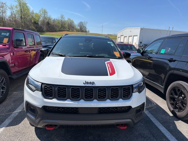 Conquer every road and no road at all in this rugged yet refined 2024 Jeep Compass Trailhawk 4WD, purpose-built for adventure and elevated with the premium Trailhawk Elite Group. Engineered with legendary Jeep capability, this off-road warrior boasts advanced 4WD performance, trail-rated toughness, and impressive ground clearance to tackle mud, snow, and rocky terrain with confidence. Inside, the Trailhawk Elite Group surrounds you with upscale comfort, featuring premium leather-trimmed seating, a heated steering wheel, heated and ventilated front seats, and a state-of-the-art infotainment system with a large touchscreen display and seamless smartphone integration. Bold exterior styling, signature red tow hooks, and aggressive stance make a statement wherever you go, while advanced safety and driver-assist technologies keep you in control on every journey. The 2024 Compass Trailhawk isn't just ready for adventure, it defines it.